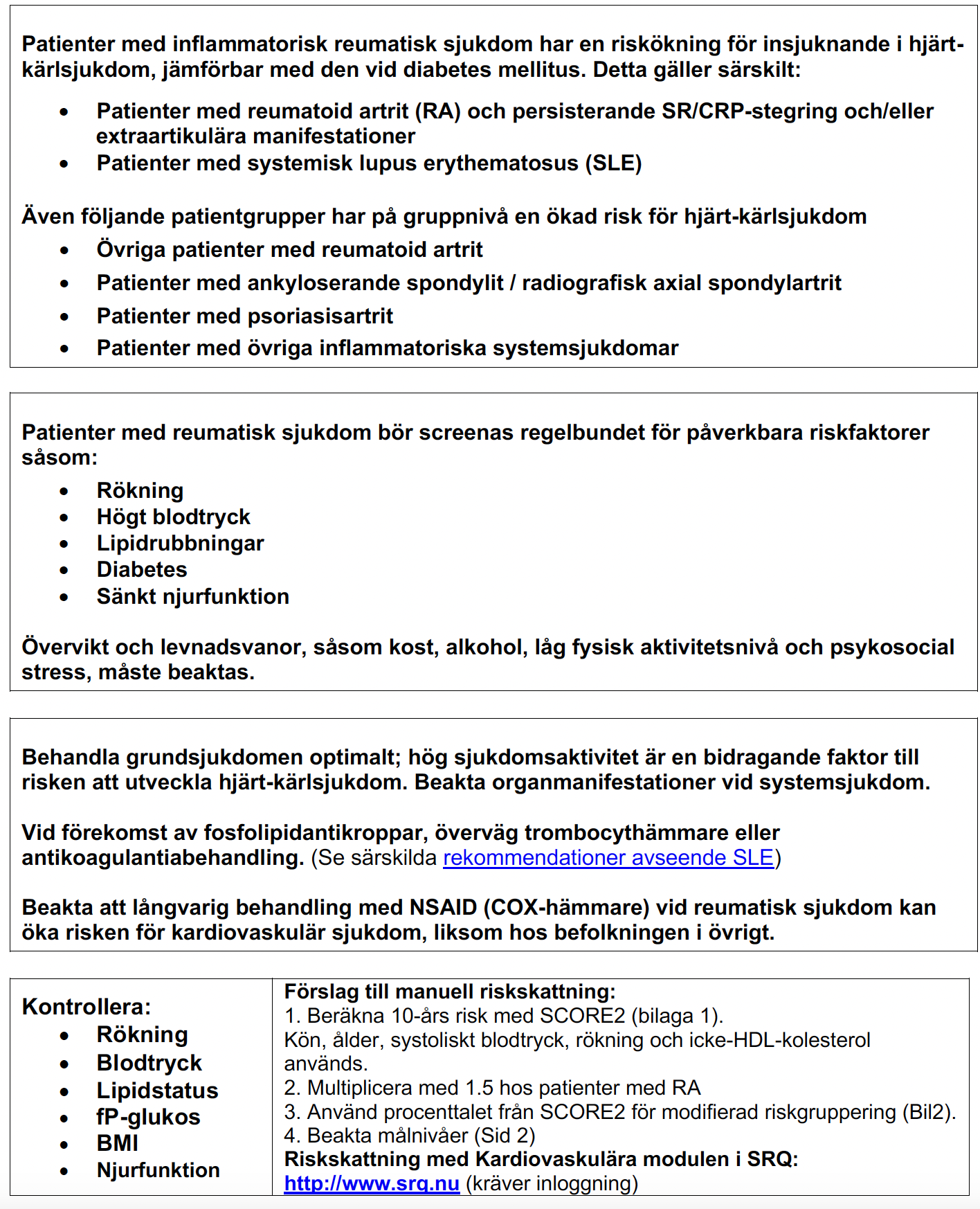 Rekommendationer framtagna 2009 och reviderade 2024 av Arbetsgruppen för kardiovaskulär komorbiditet inom Svensk Reumatologisk förening (SRF)