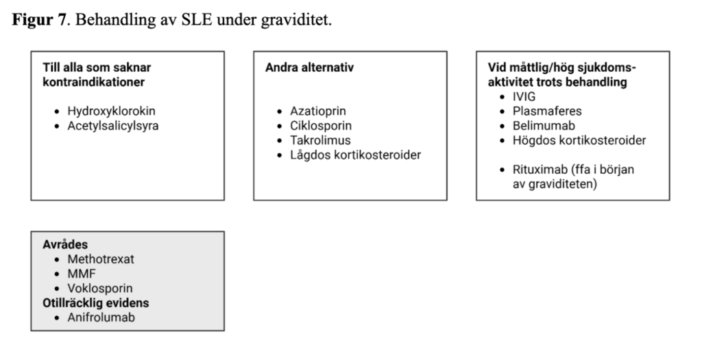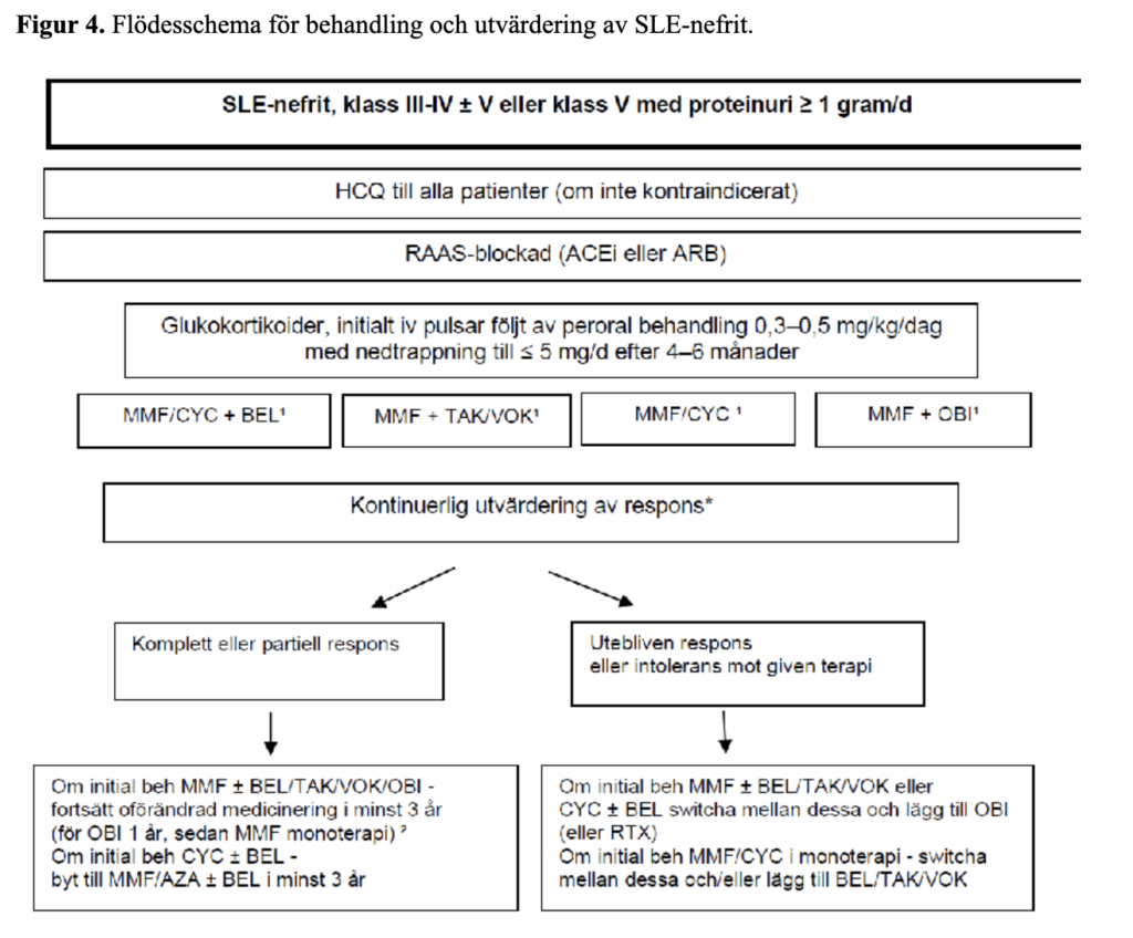 - Behandling vid SLE kräver ett multidisciplinärt och individanpassat omhändertagande inkluderande patientutbildning och patientmedverkan vid beslut om behandling, samtidigt som kostnad för patient och samhälle tas i beaktande.