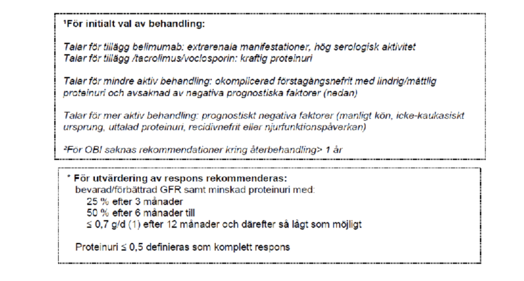 - Behandling av ”serologisk aktivitet” (komplementkonsumtion och/eller påvisade DNA-antikroppar) i frånvaro av klinisk bild talande för sjukdomsaktivitet bör undvikas.