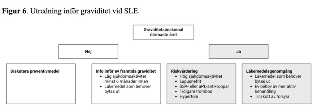 - För att säkerställa diagnostik och behandling bör patienter med känd eller misstänkt SLE skötas på reumatologisk specialistmottagning.